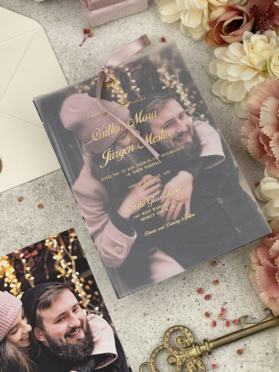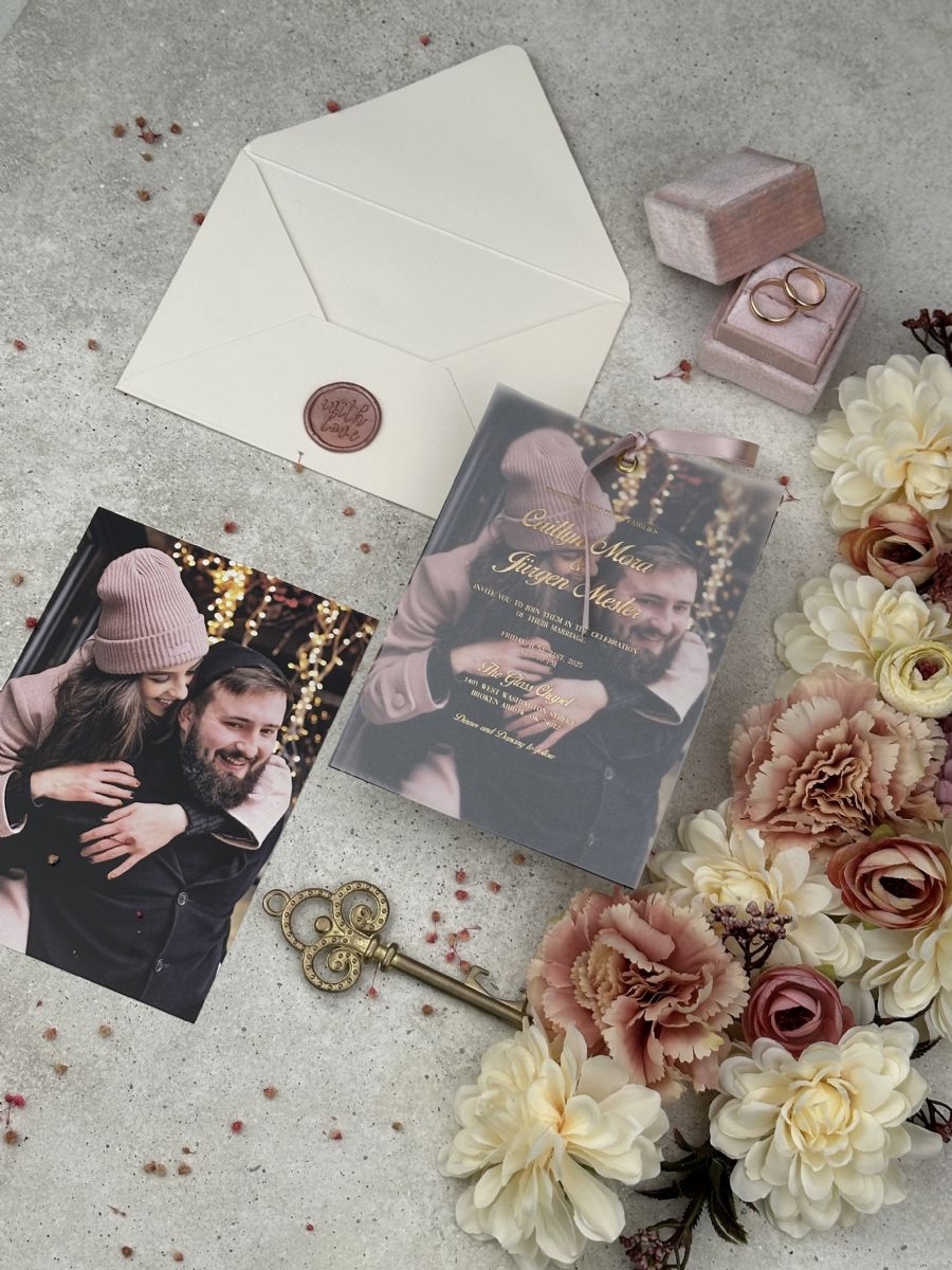 Altın Baskılı Fotoğraflı Aydınger Düğün Davetiyesi