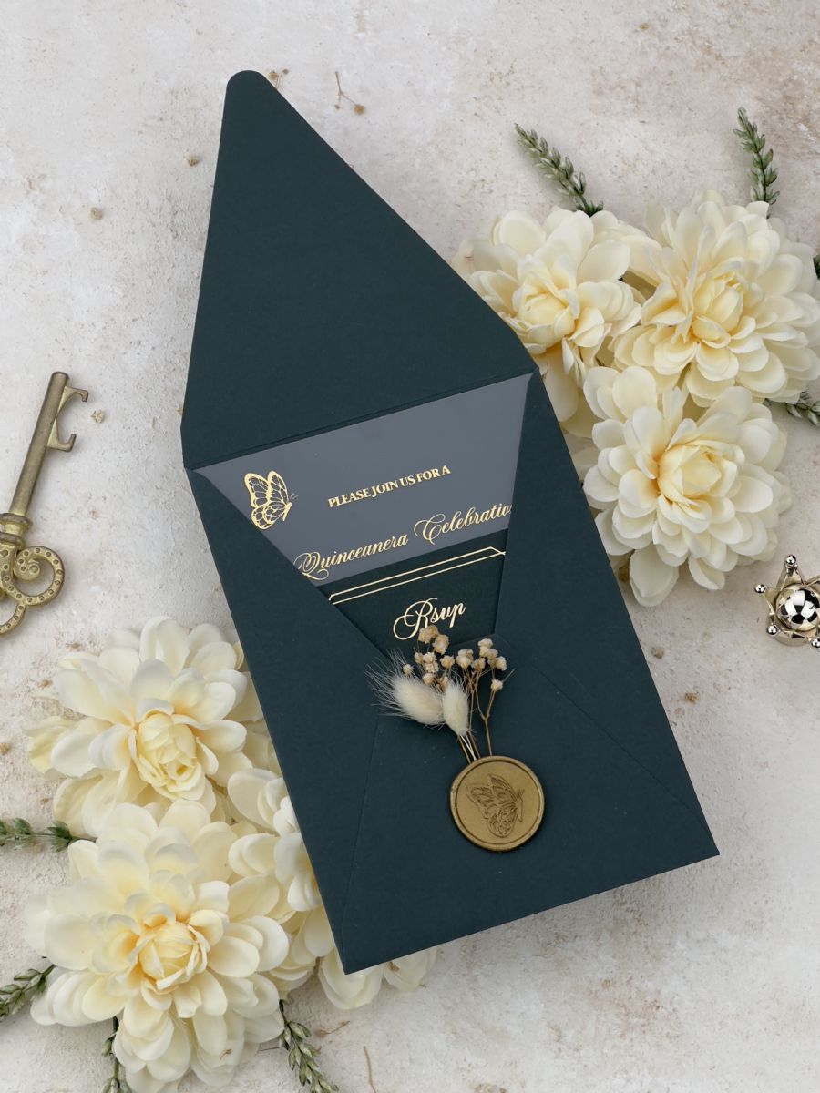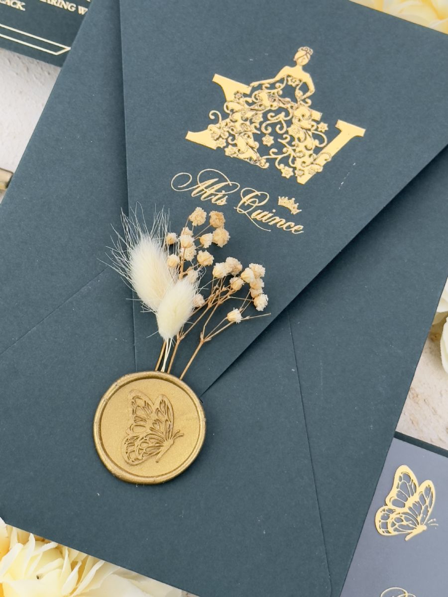 Altın Baskılı Kelebek Detaylı Doğum Günü Davetiyesi