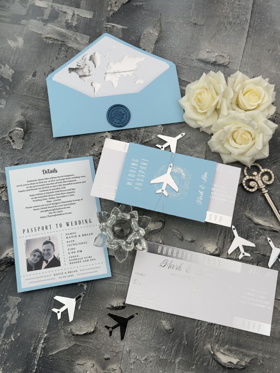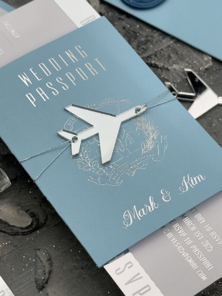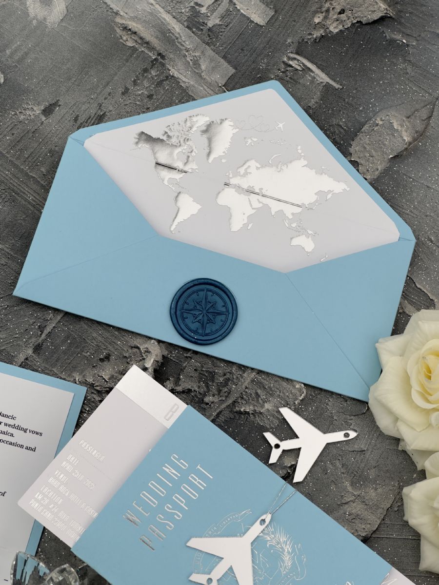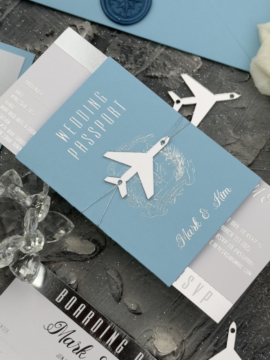 Bebe Mavisi Ve Gümüş Baskılı Pasaport Davetiye