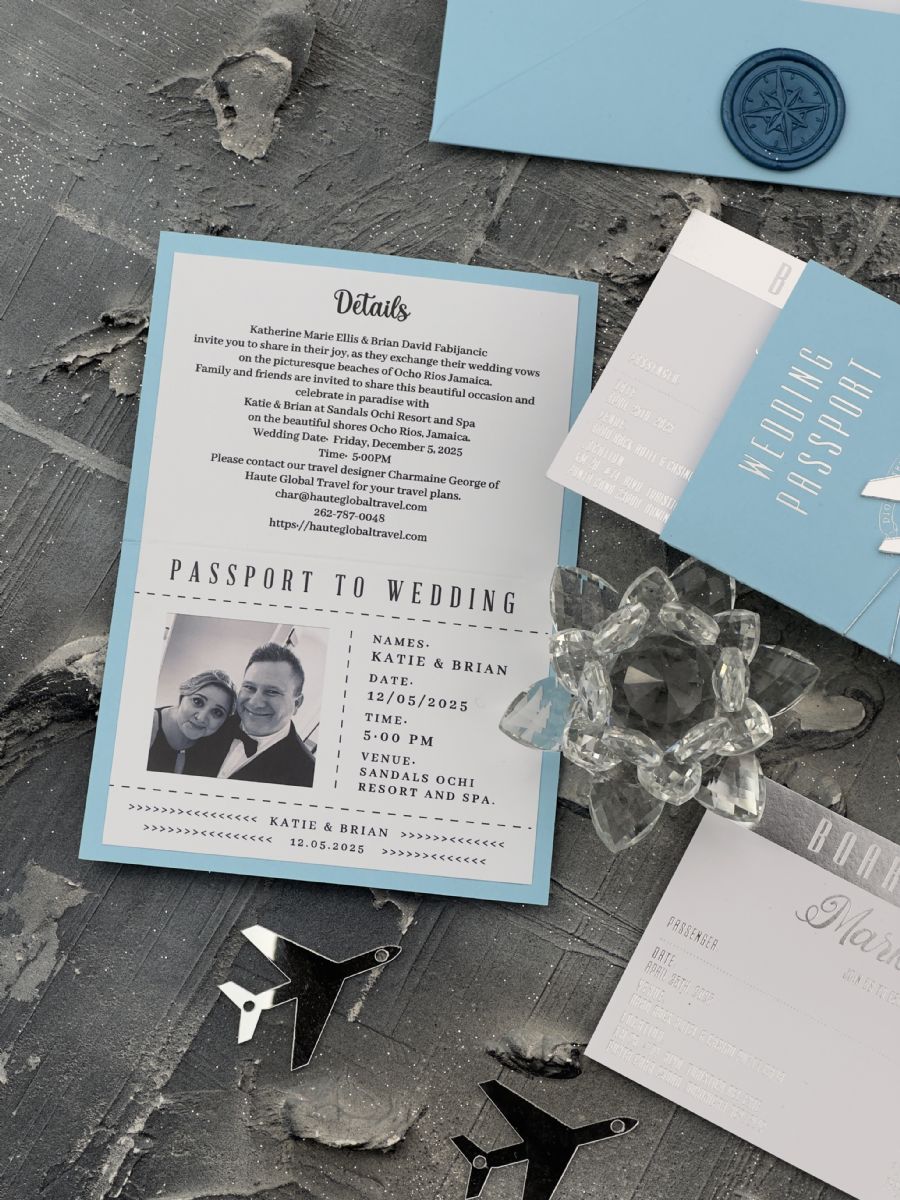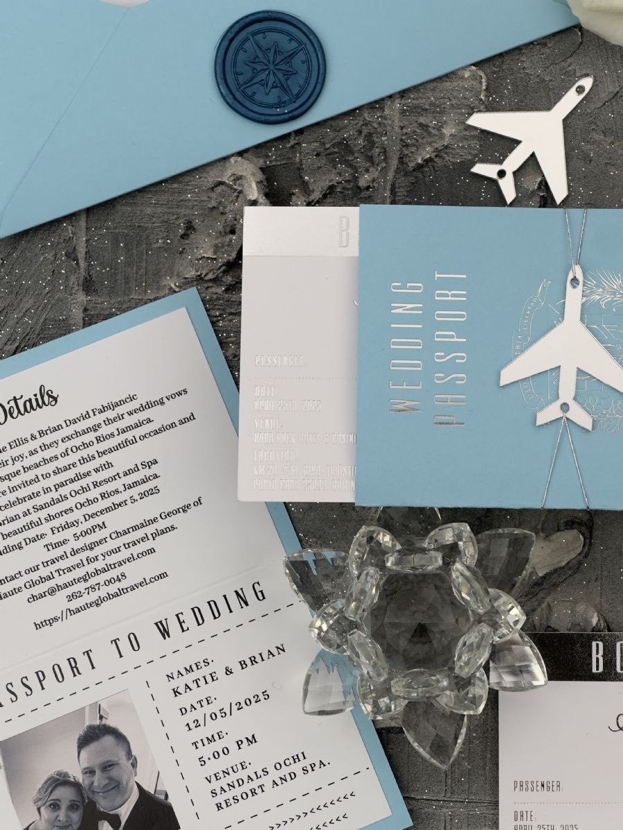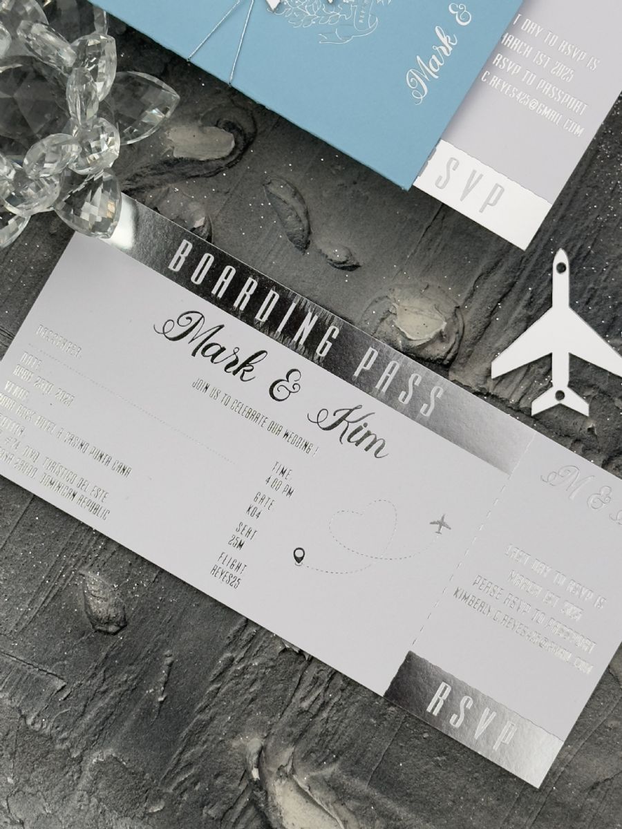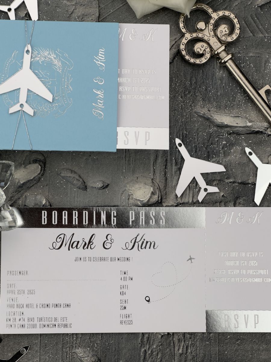 Bebe Mavisi Ve Gümüş Baskılı Pasaport Davetiye