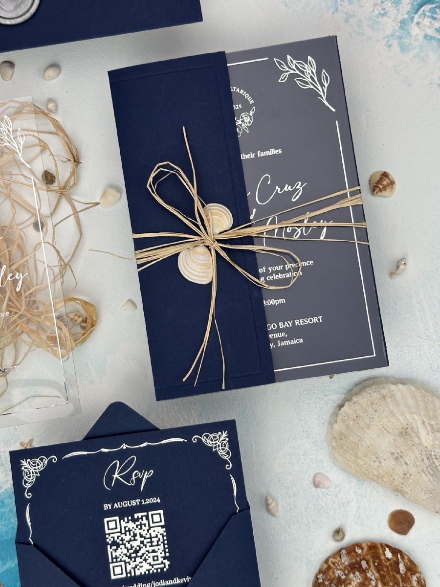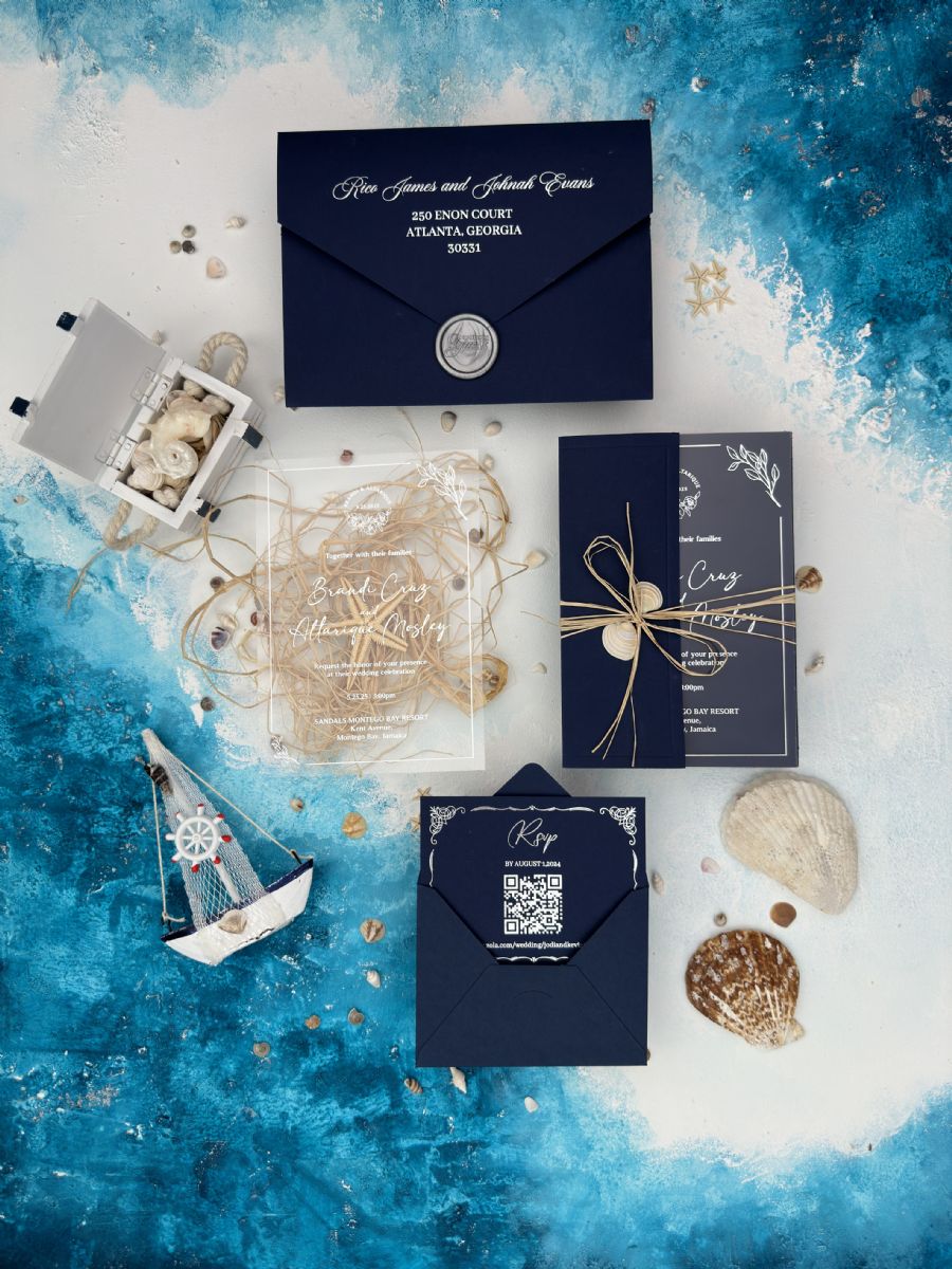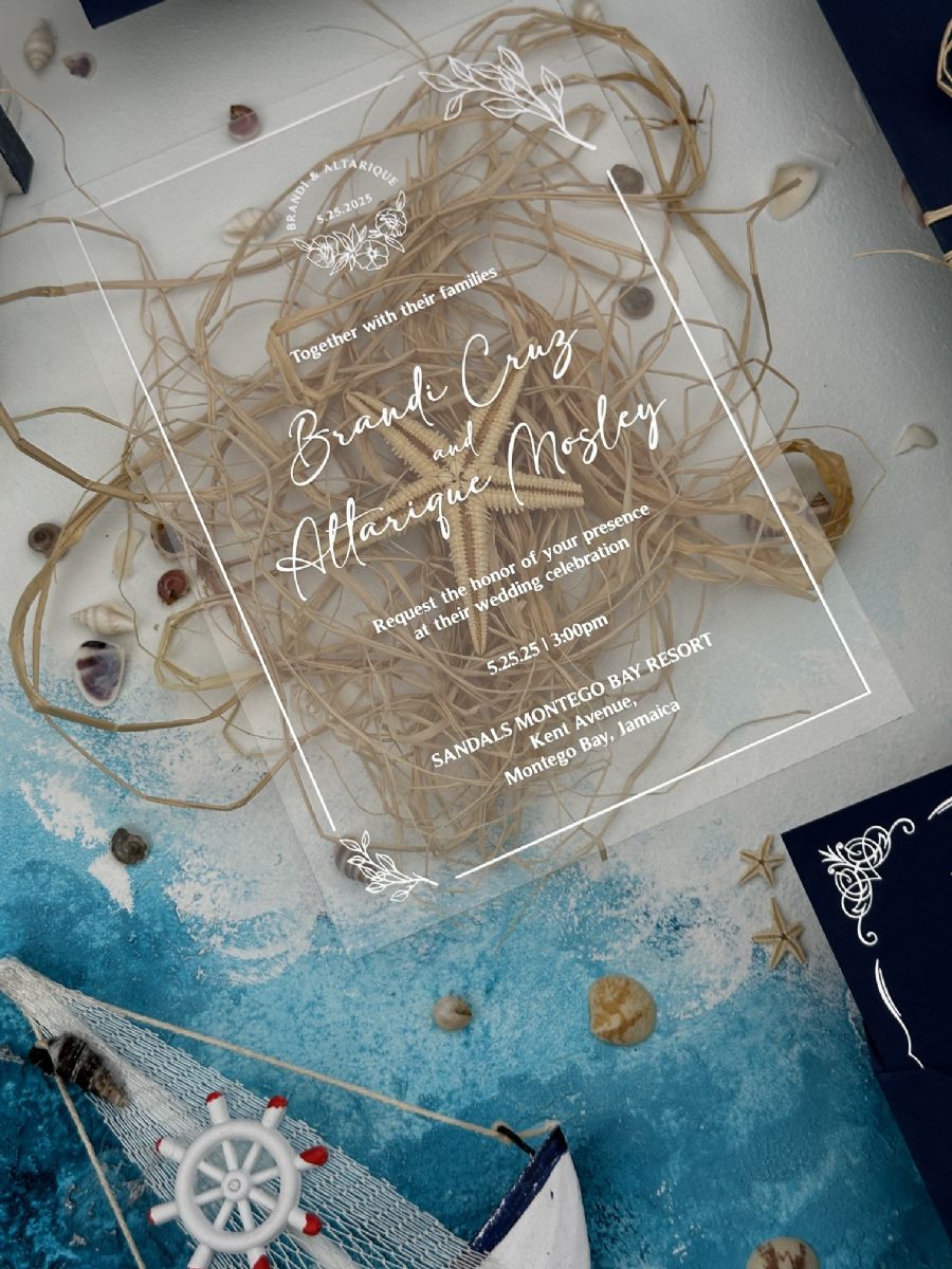 Deniz Kabuklu Süslemeli Akrilik Davetiye