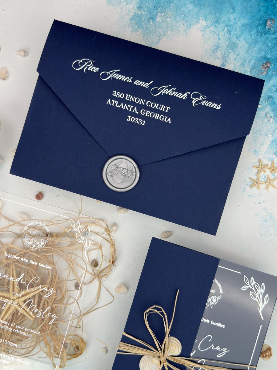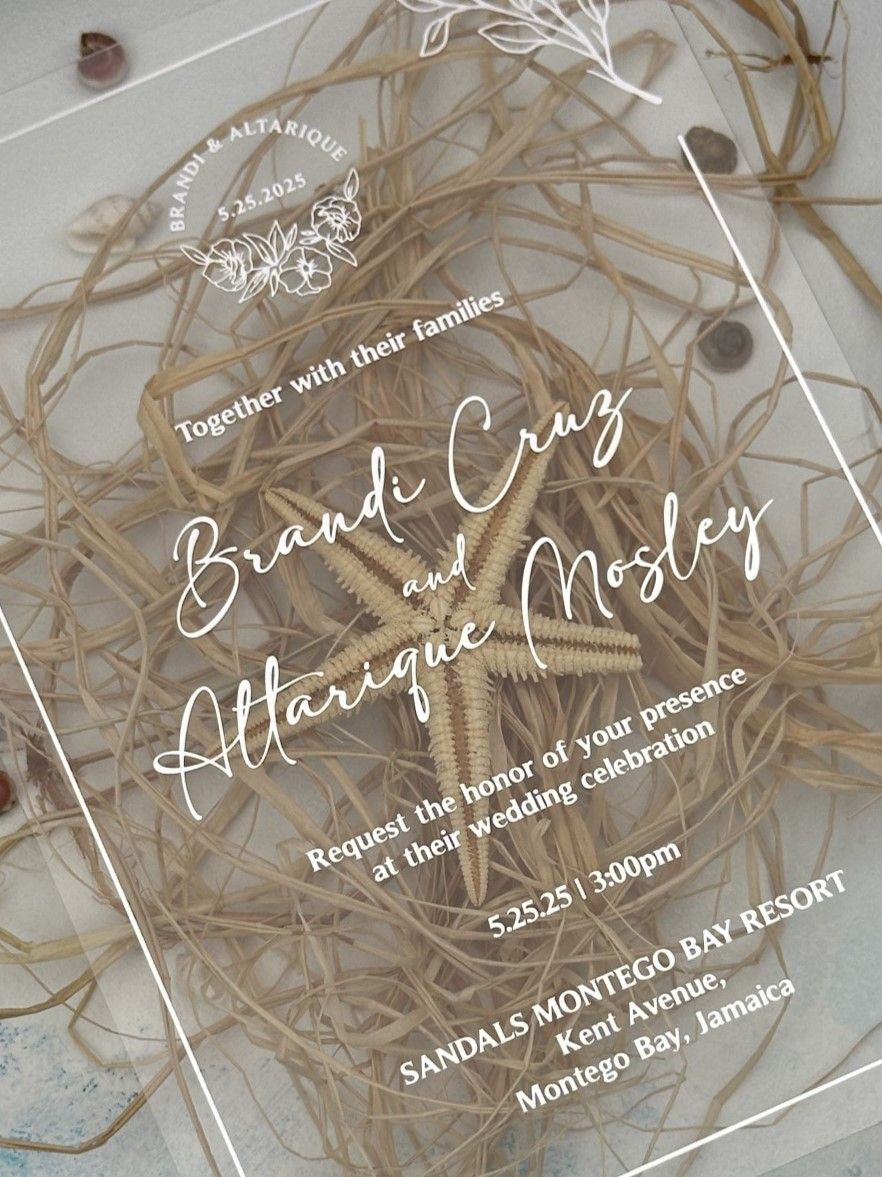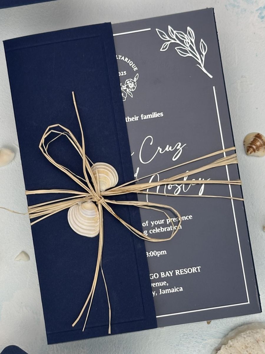 Deniz Kabuklu Süslemeli Akrilik Davetiye