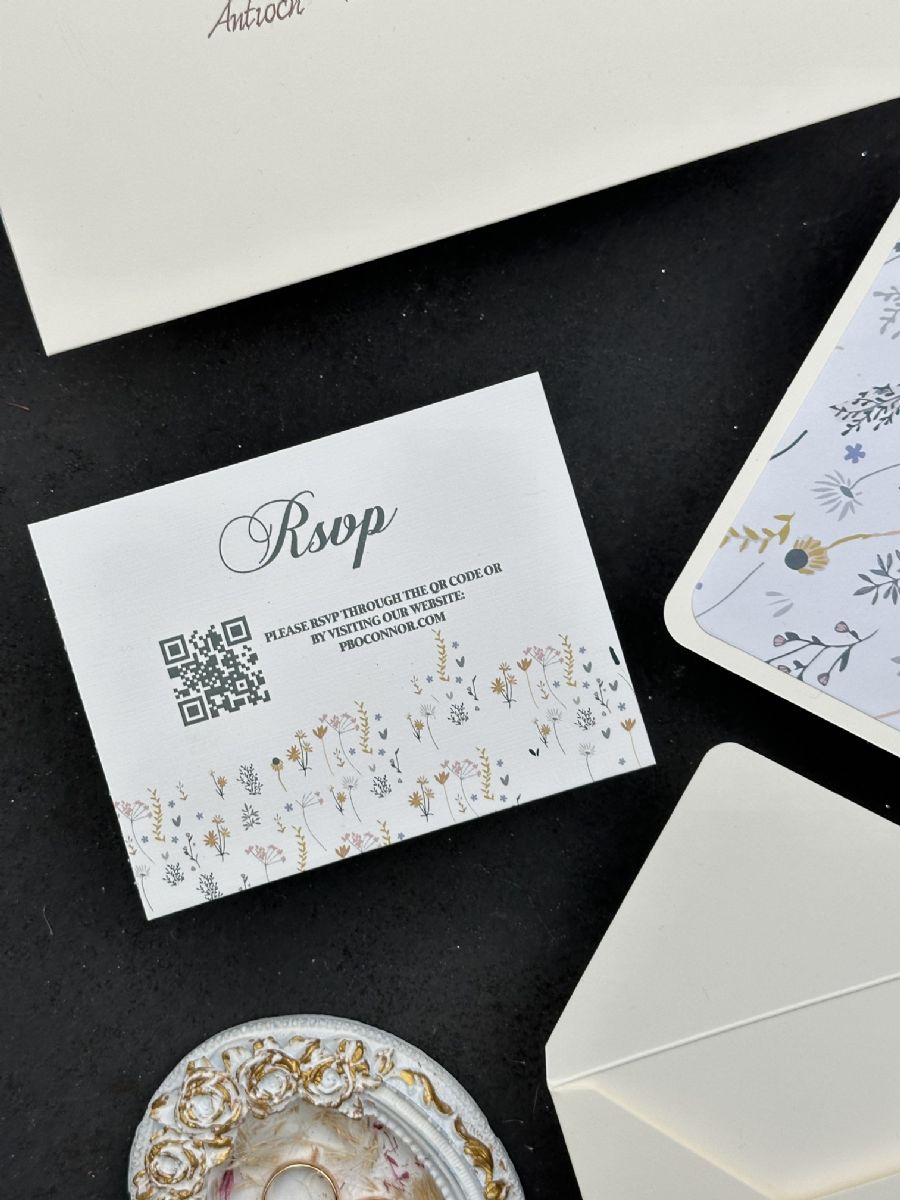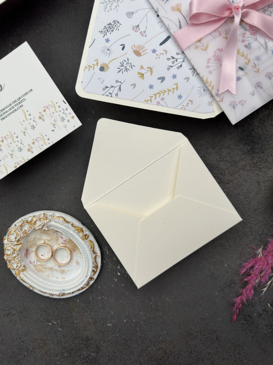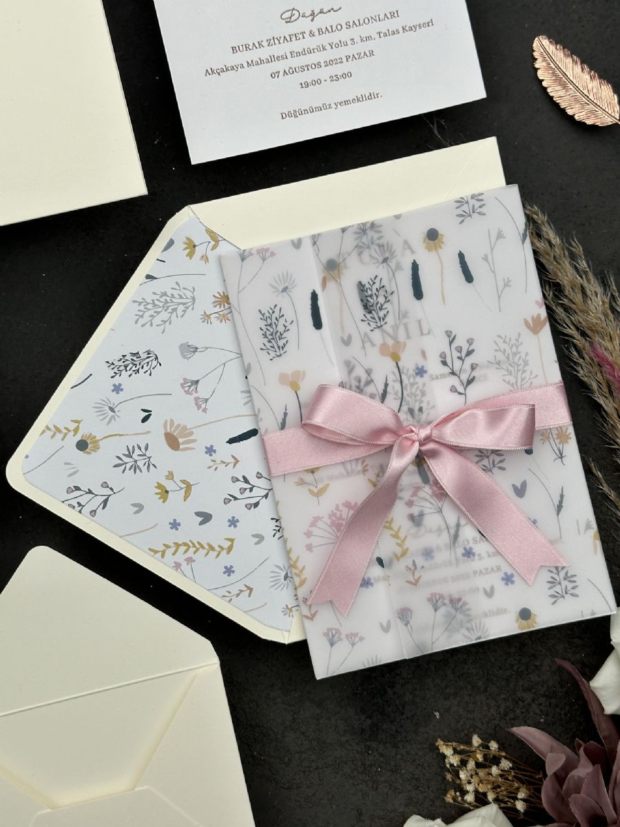 Gömme Baskılı Ve Çiçek Desen Baskılı Aydınger Zarflı Kurdeleli Davetiye