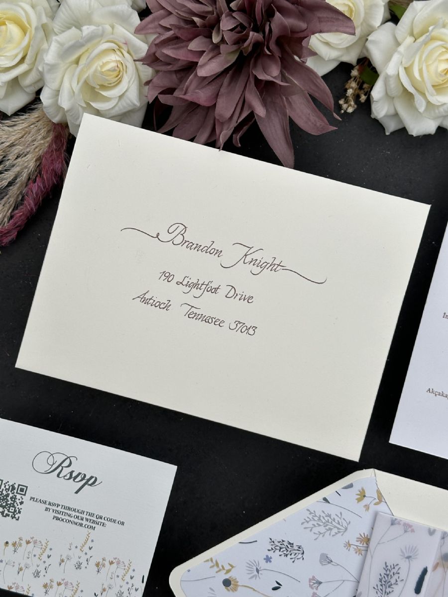 (kurutulmuş çiçek dekorasyonu, iade adresi baskısı, misafir adresi baskısı gibi)
