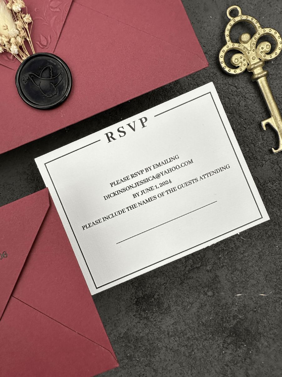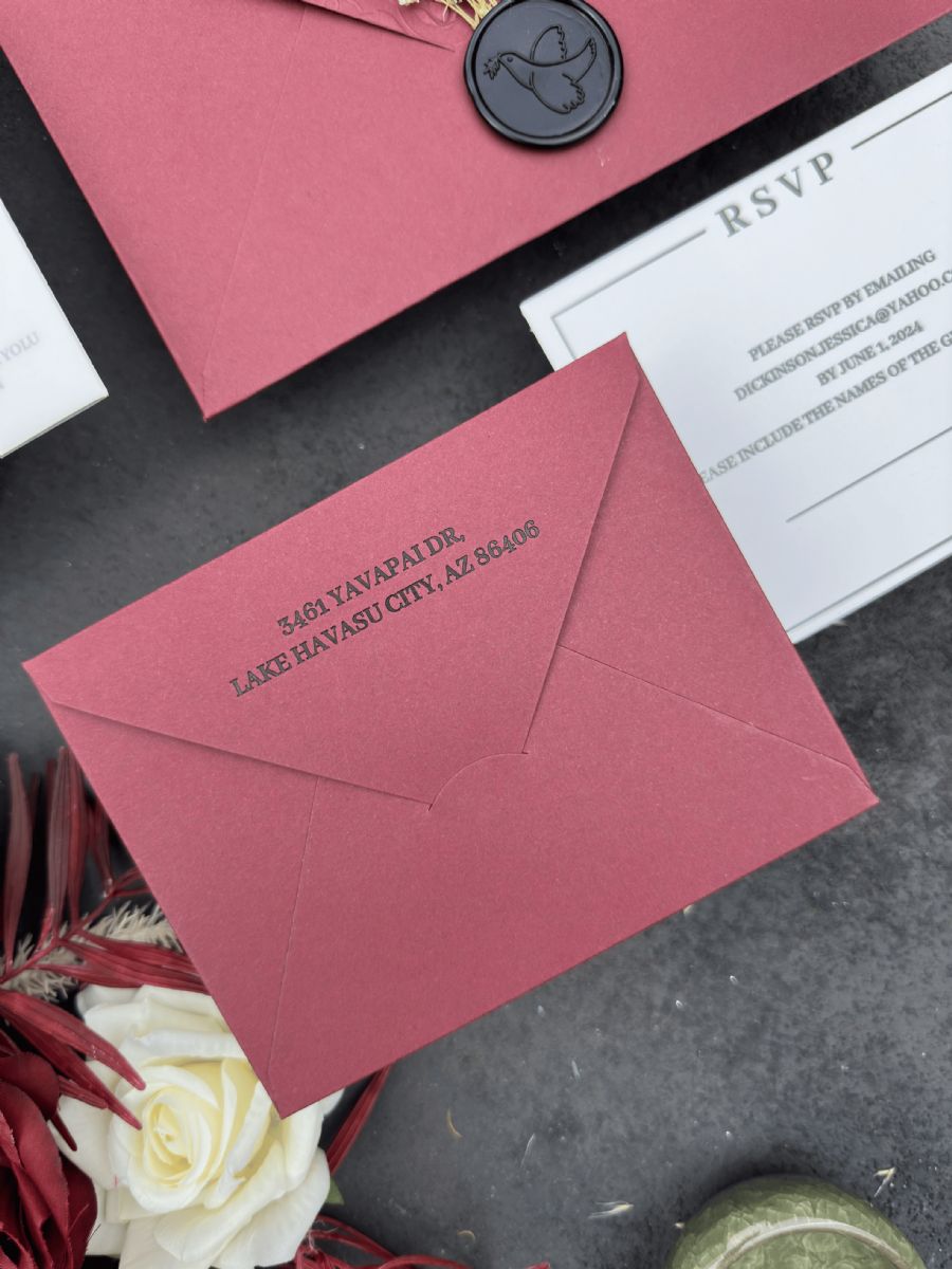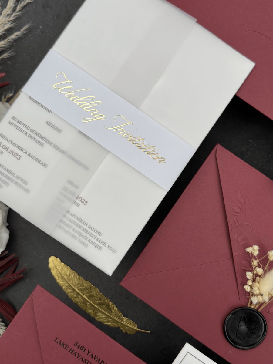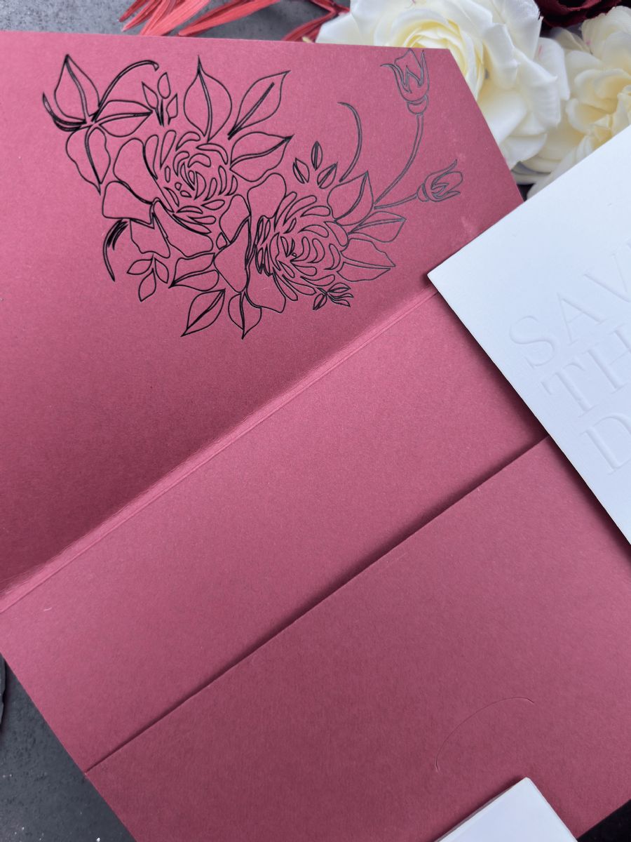 Kabartma Baskılı Bordo Zarflı Save The Date Davetiyesi
