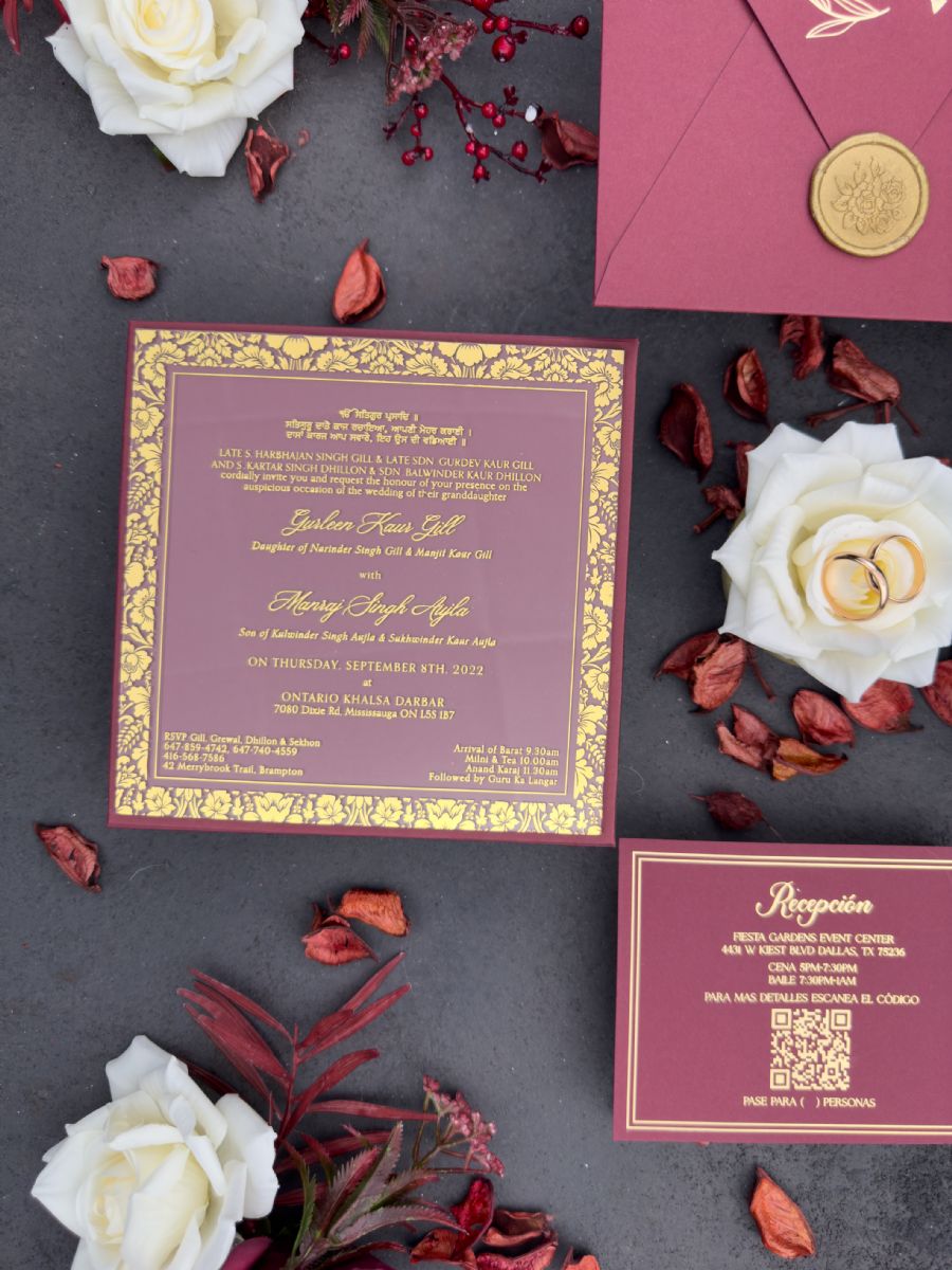 Kenarları Motifli Kare Düğün Davetiyesi