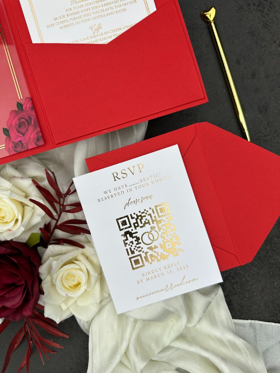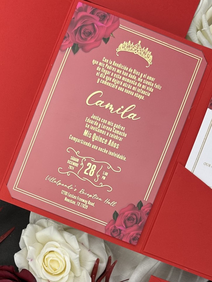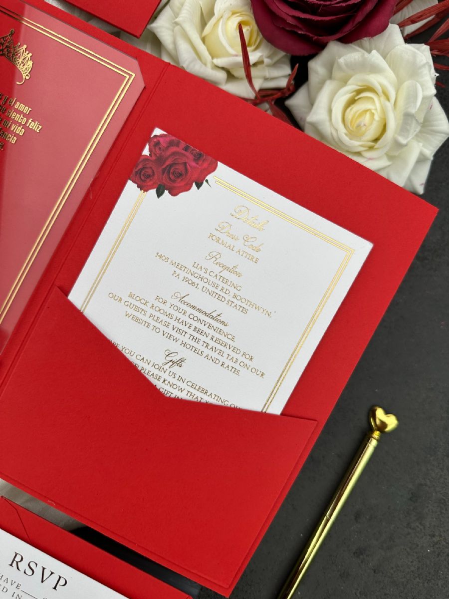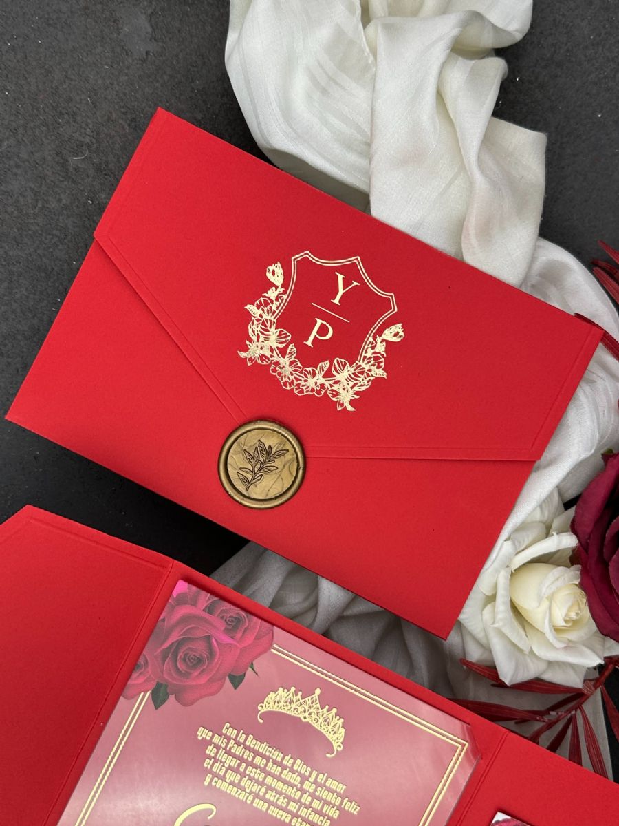 Kırmızı Cepli Zarflı Altın Ve UV Baskılı Doğum Günü Davetiyesi