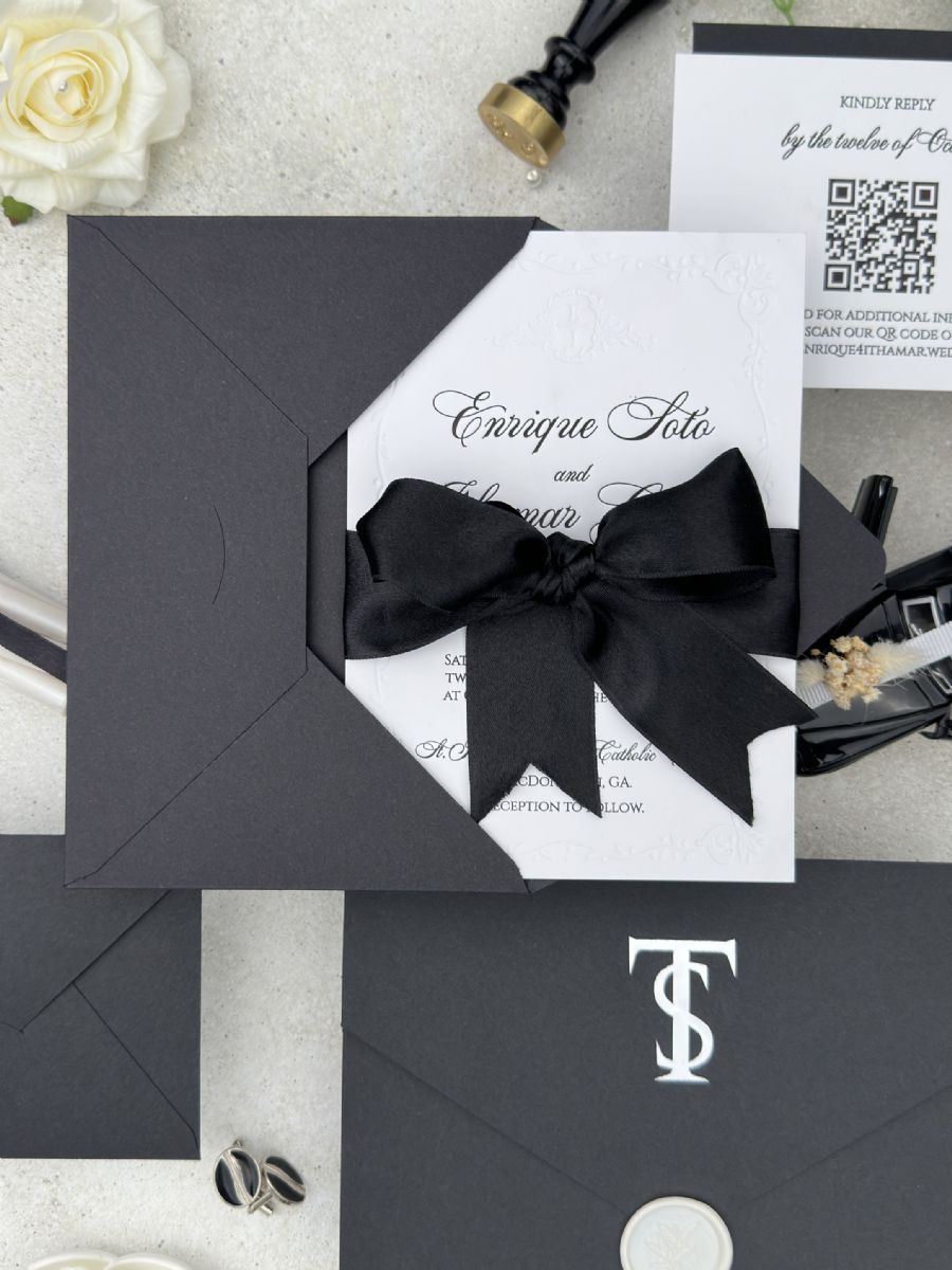 Kurdele Süslemeli Ve Gömme Baskılı Kaliteli Düğün Davetiyesi
