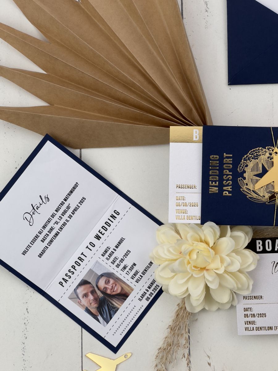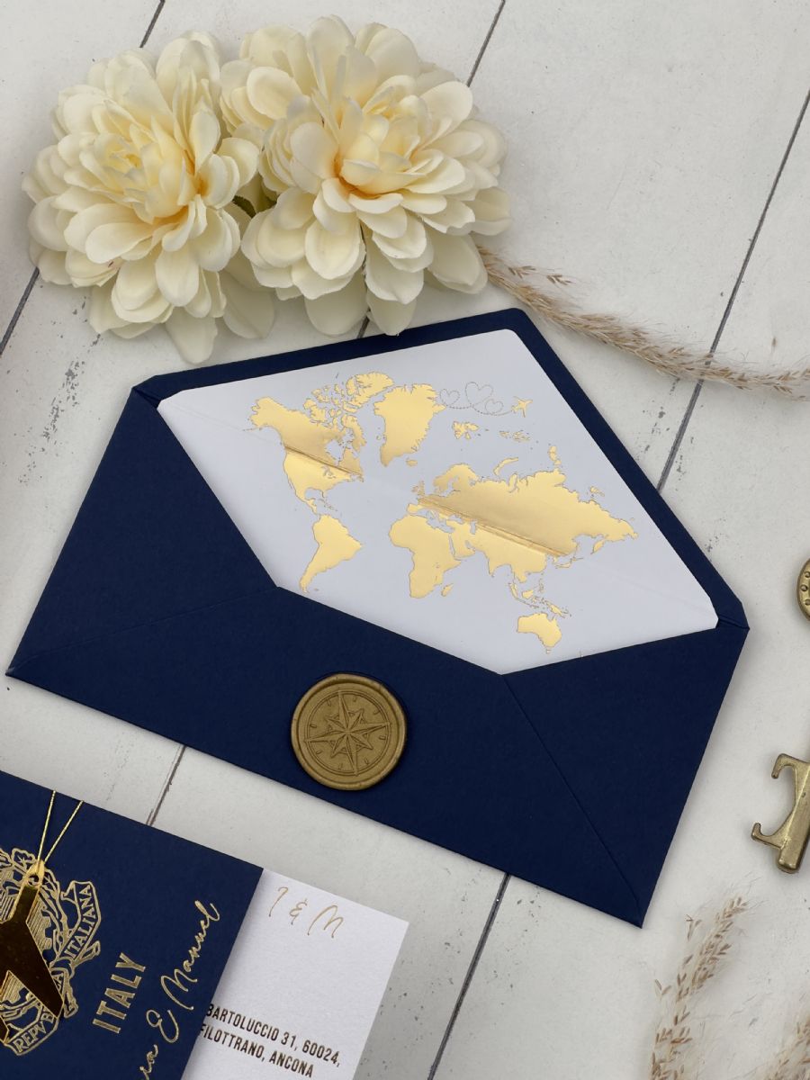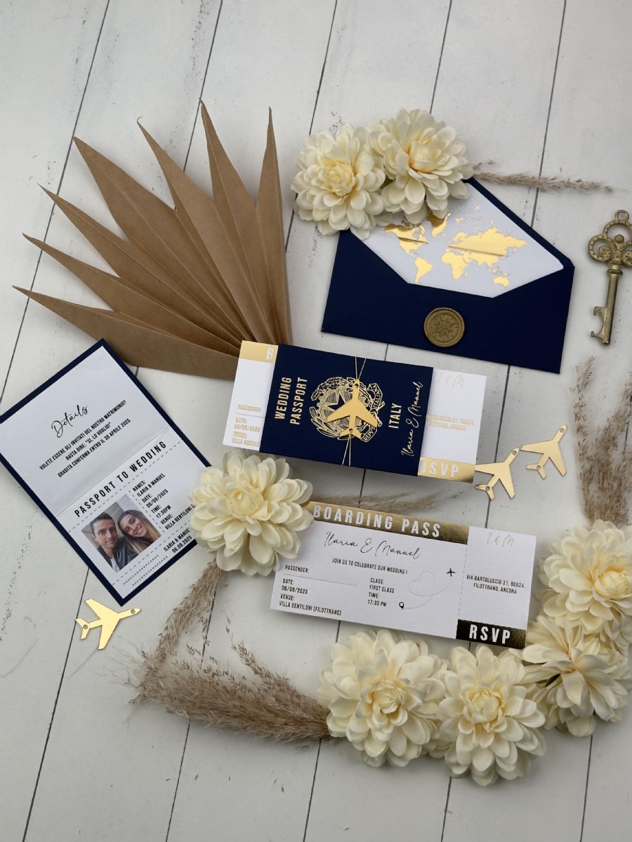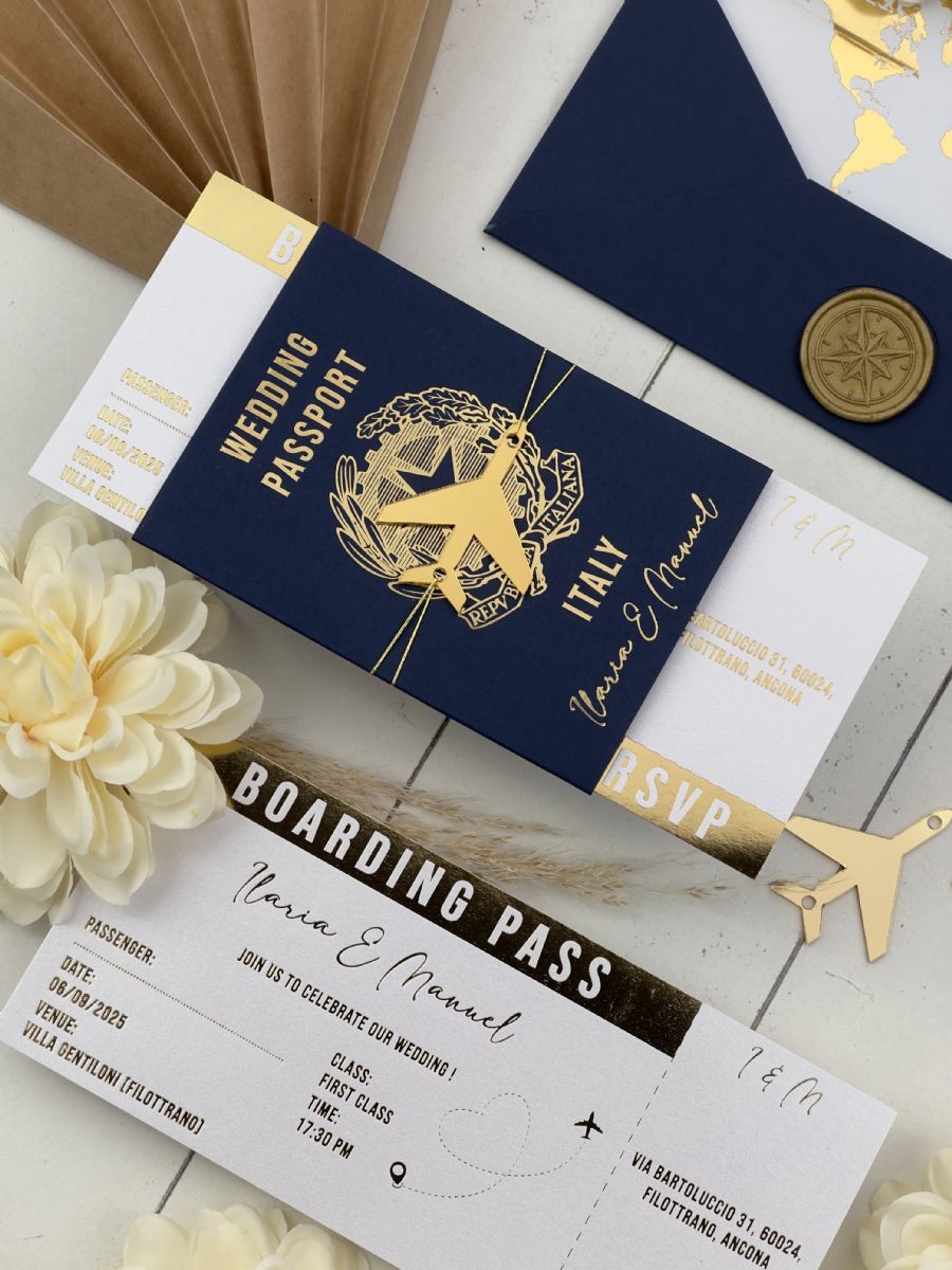 Lacivert Zarf Ve Altın Süslemeli Pasaport Davetiye