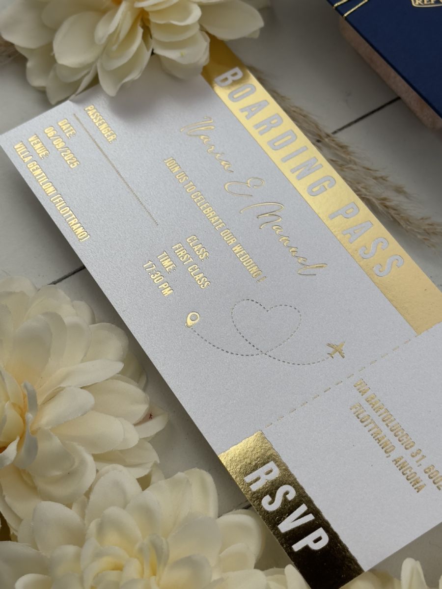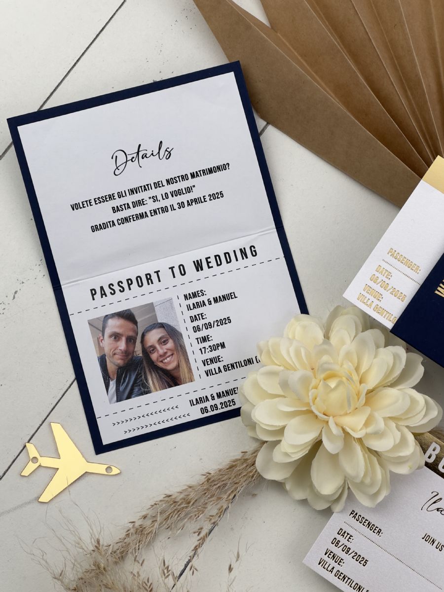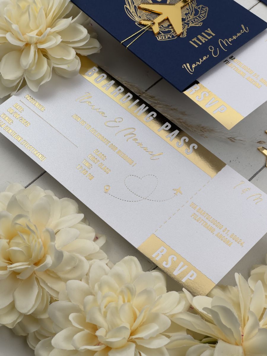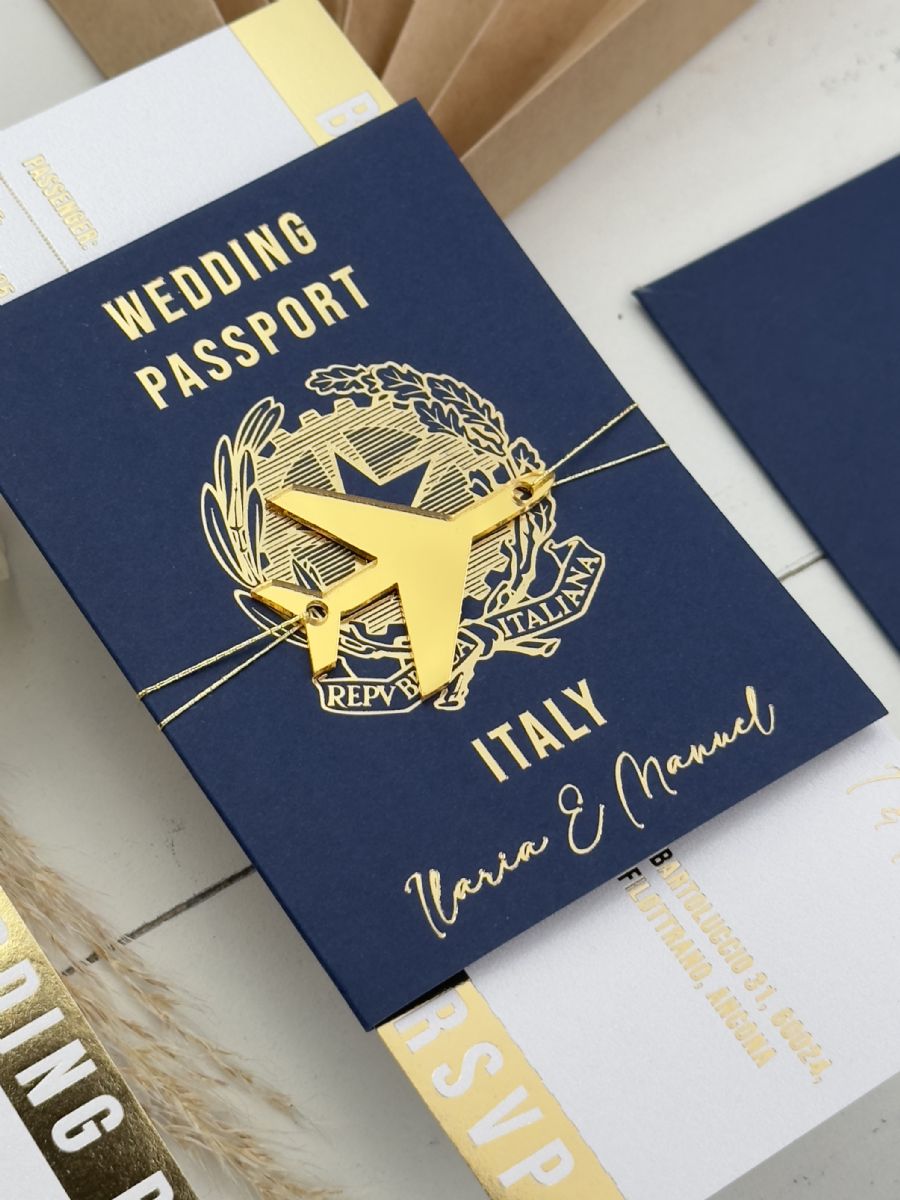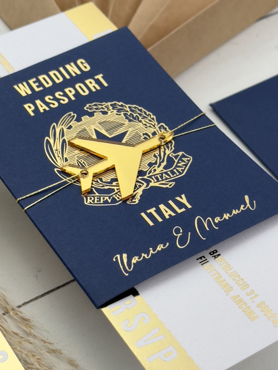 Lacivert Zarf Ve Altın Süslemeli Pasaport Davetiye