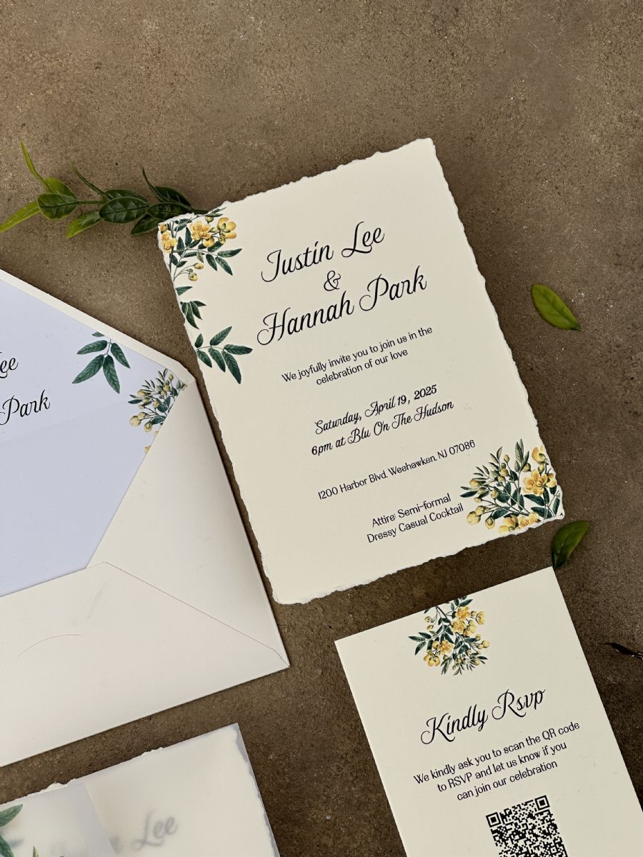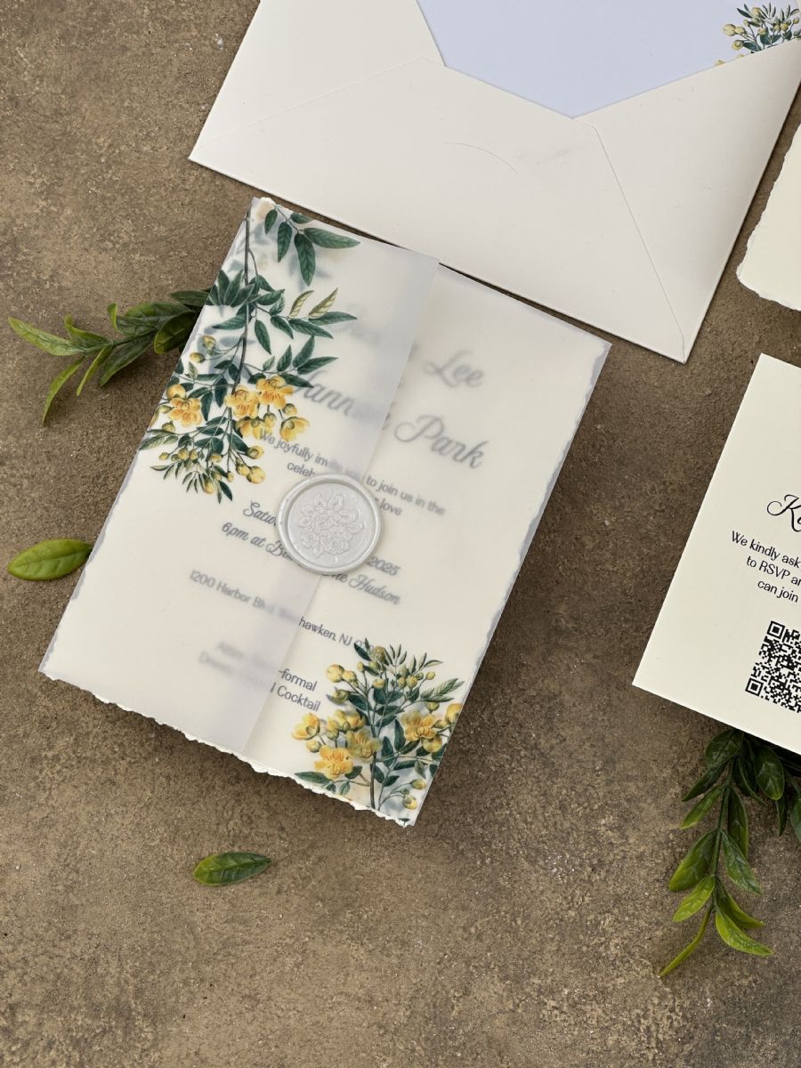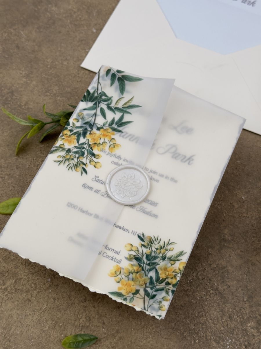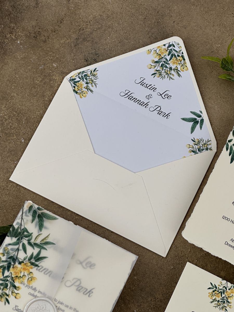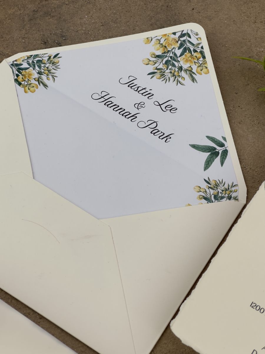 Limon Çiçeği Desenli Astarlı Aydınger Zarflı Davetiye