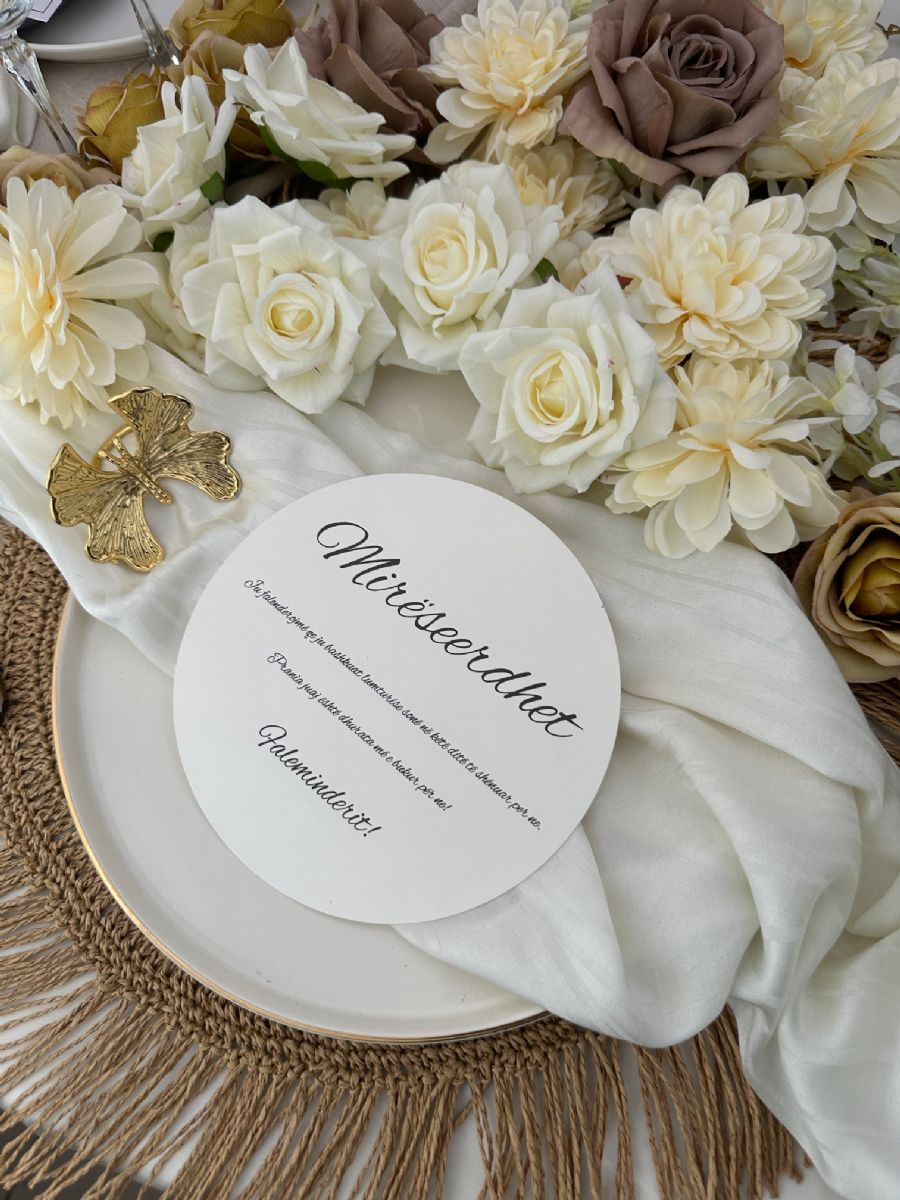 (kurutulmuş çiçek dekorasyonu, iade adresi baskısı, misafir adresi baskısı gibi)