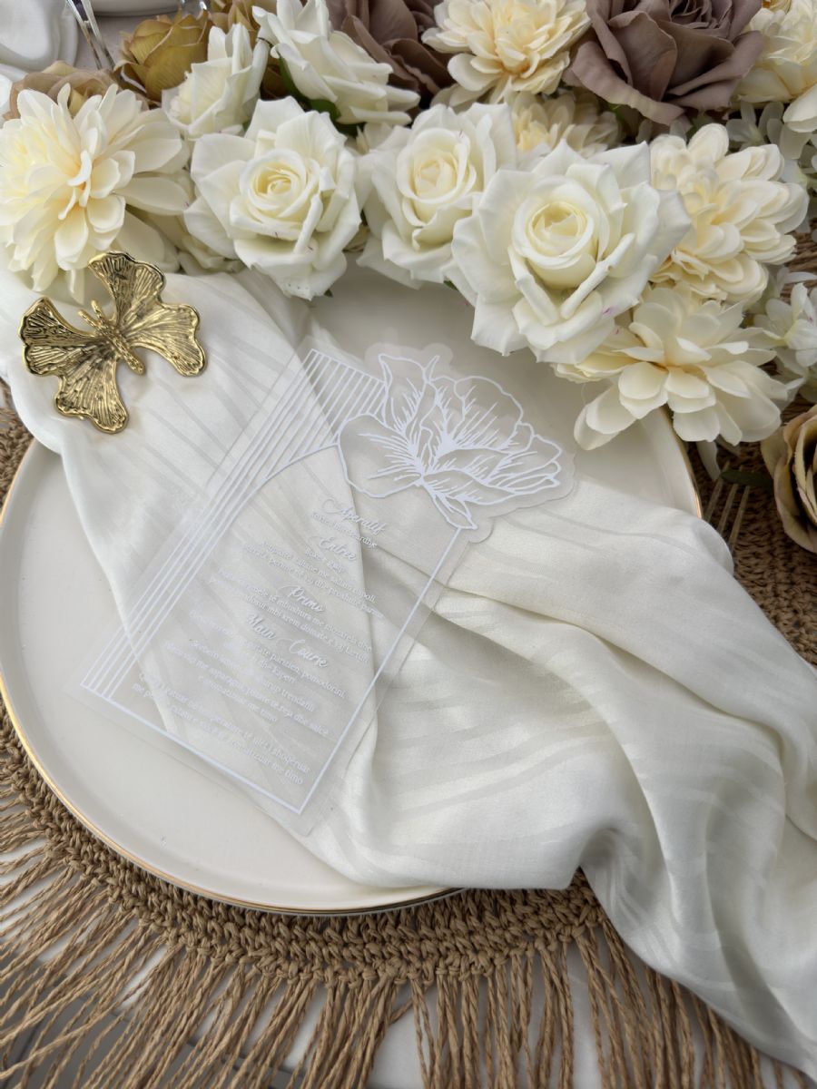 - Standart kalınlık olarak 0,7 mm belirledik ve şeffaf veya buzlu olmasına bakılmaksızın bu kalınlığı kullanıyoruz. Davetiye kartları için ideal bir kalınlık olduğunu ve memnun kalacağınızı düşünüyoruz. Daha kalın bir akrilik kullanmamızı isterseniz bunu yapabiliriz, çünkü daha kalındır ve daha ağır bir kargoya sahiptir, 0,7 mm akrilik ile karşılaştırıldığında fiyat farkı olacaktır. Bunun için lütfen bizimle iletişime geçin.