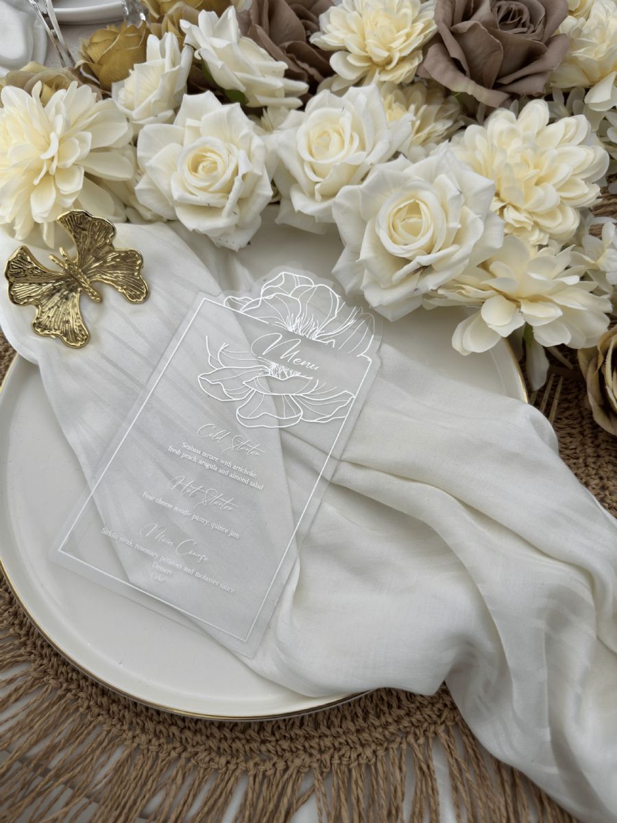 - Standart kalınlık olarak 0,7 mm belirledik ve şeffaf veya buzlu olmasına bakılmaksızın bu kalınlığı kullanıyoruz. Davetiye kartları için ideal bir kalınlık olduğunu ve memnun kalacağınızı düşünüyoruz. Daha kalın bir akrilik kullanmamızı isterseniz bunu yapabiliriz, çünkü daha kalındır ve daha ağır bir kargoya sahiptir, 0,7 mm akrilik ile karşılaştırıldığında fiyat farkı olacaktır. Bunun için lütfen bizimle iletişime geçin.