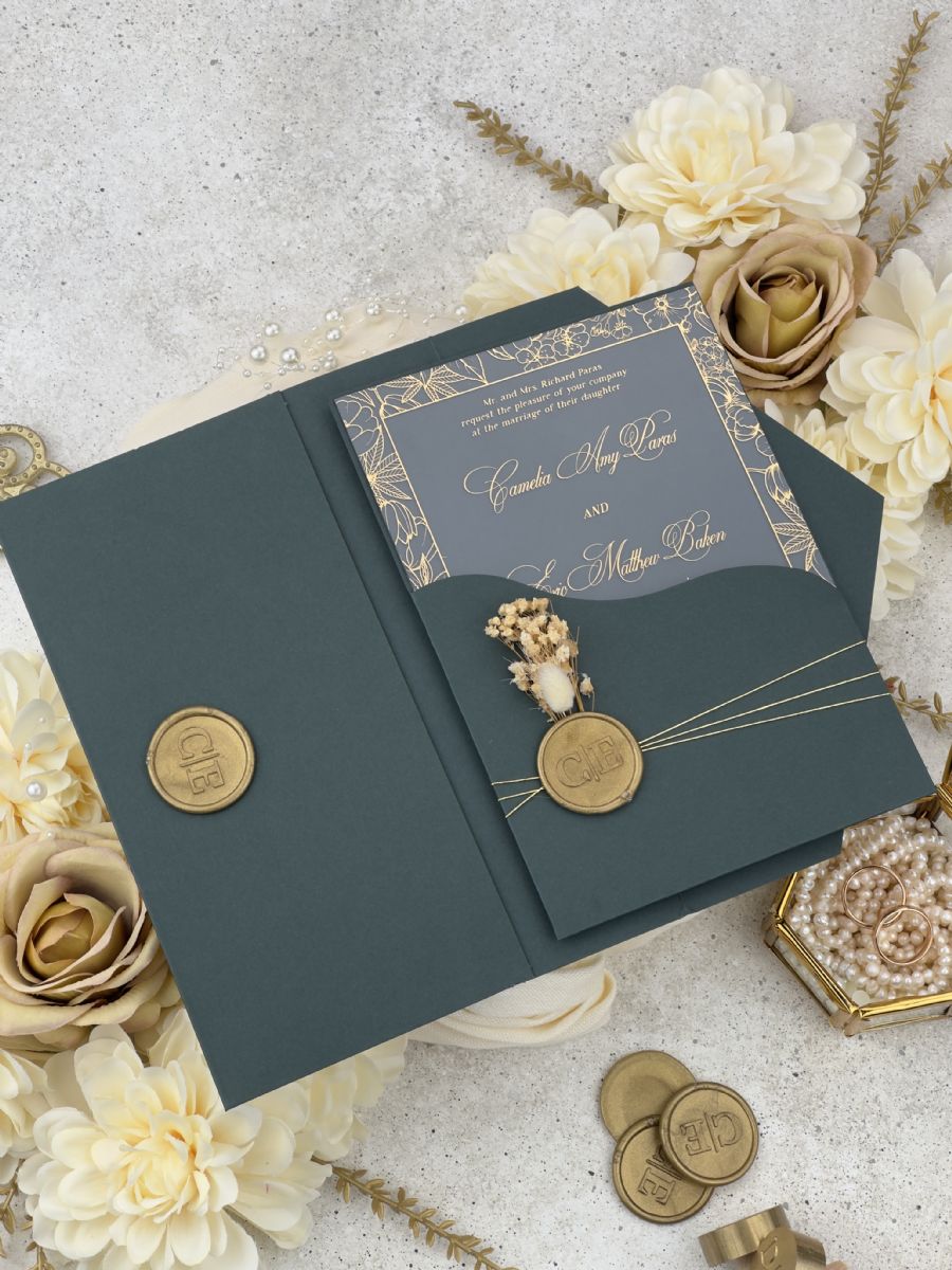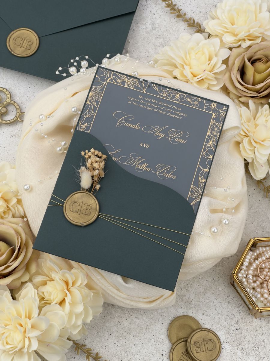 Modern Tasarımlı Çiçek Süslemeli Düğün Davetiyesi