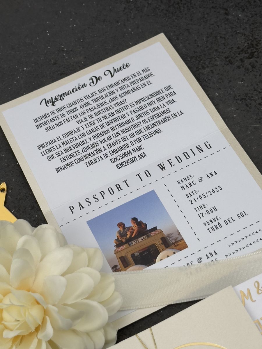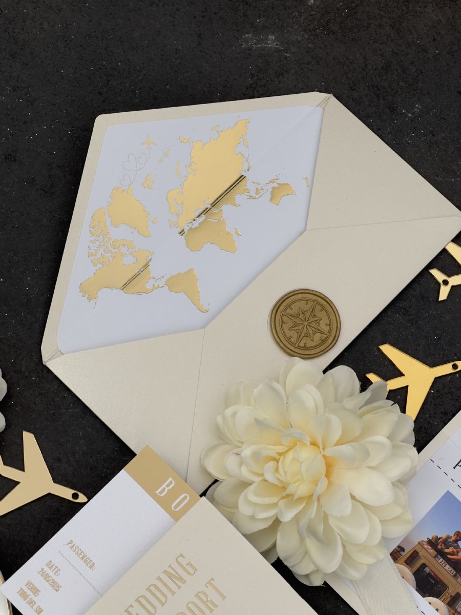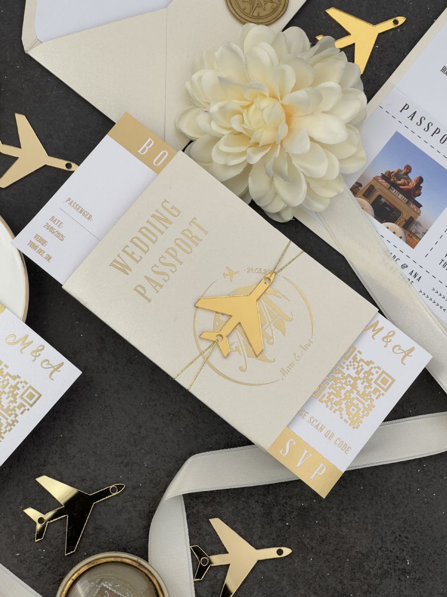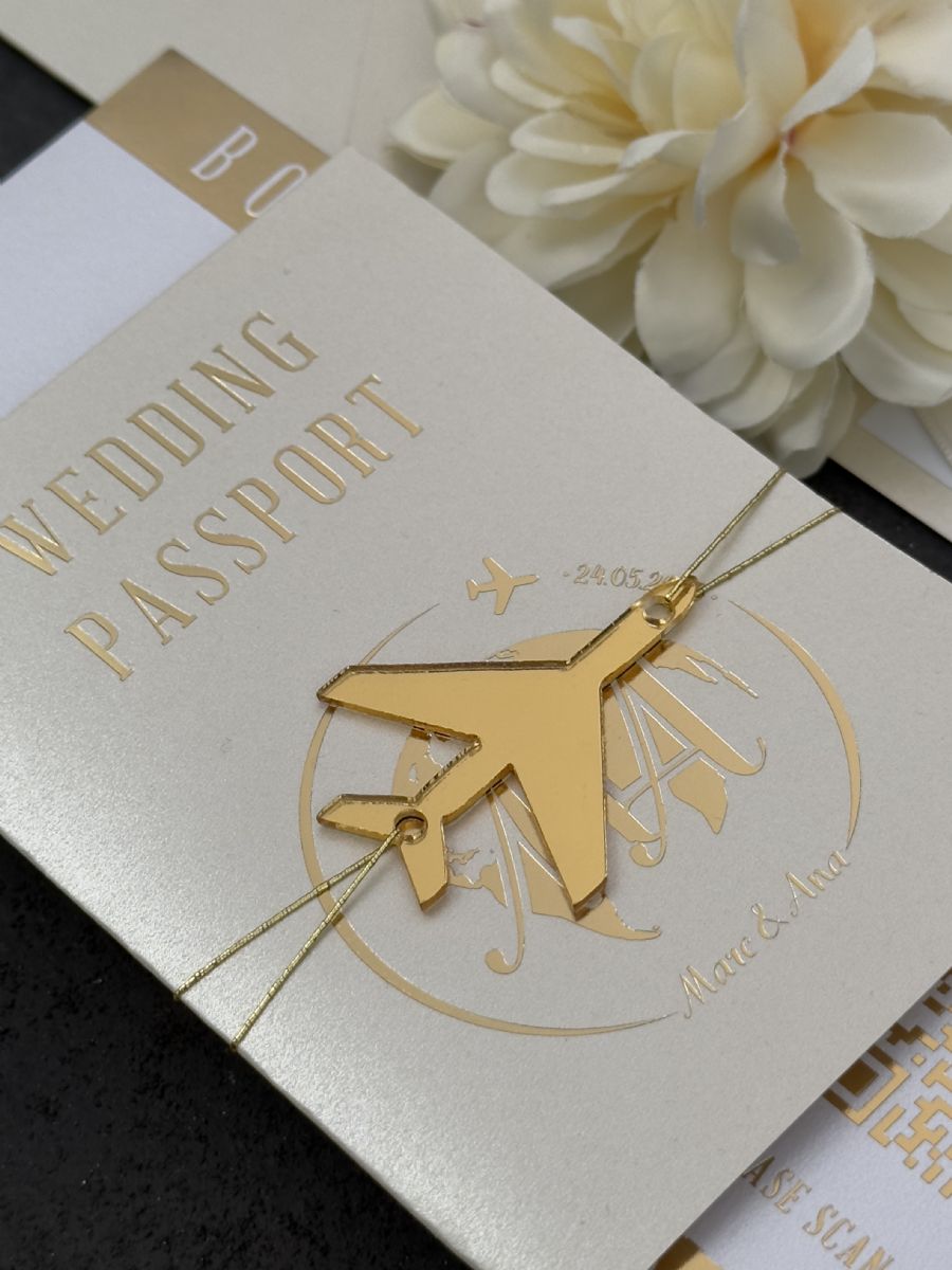 Parlak Bej Ve Gold Baskı Detaylı Pasaport Davetiye