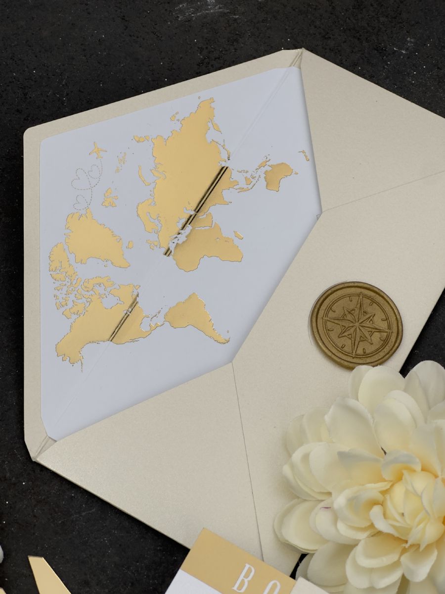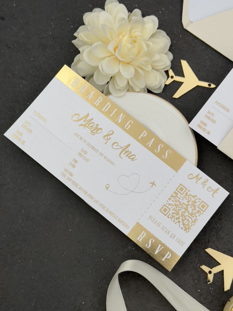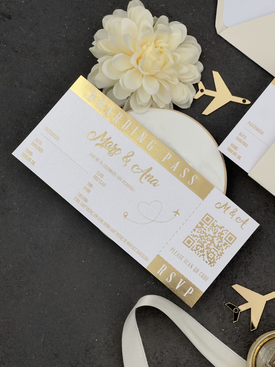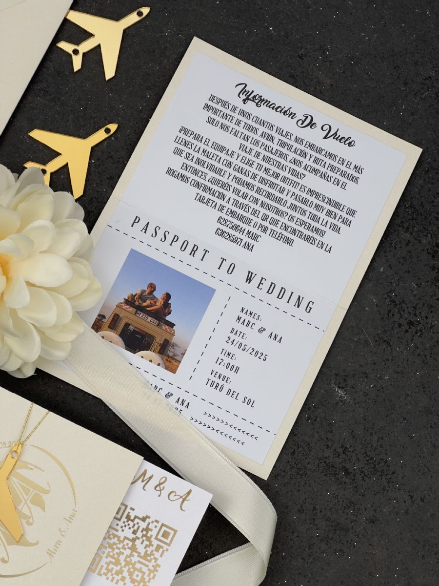 Parlak Bej Ve Gold Baskı Detaylı Pasaport Davetiye
