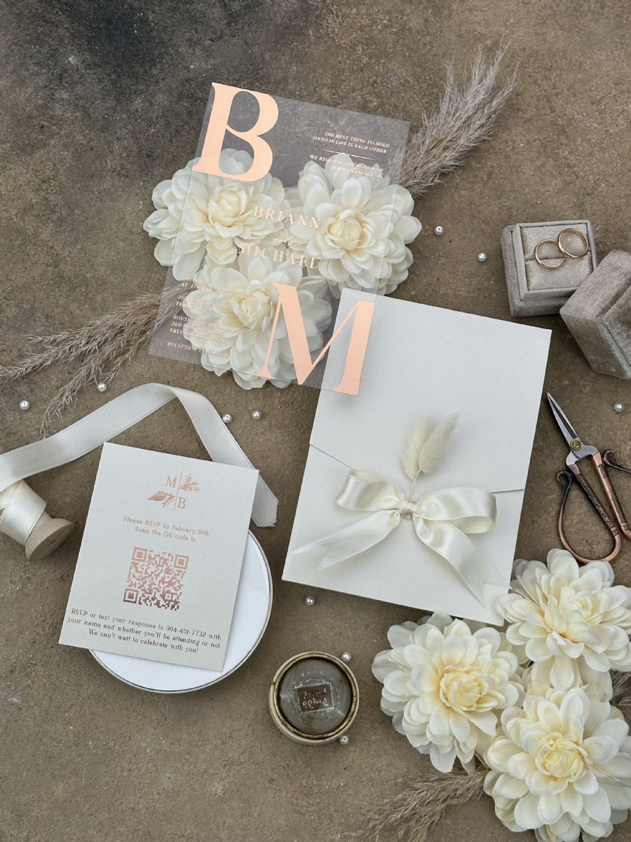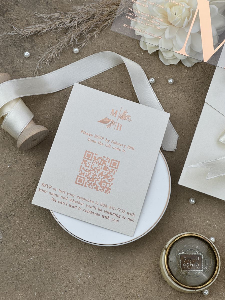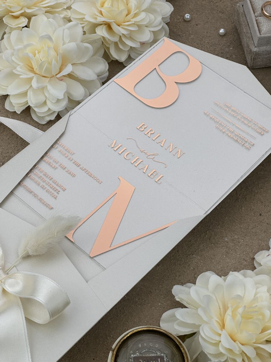 Rose Yaldız Baskılı Ve Kurdele Süslemeli Düğün Davetiyesi