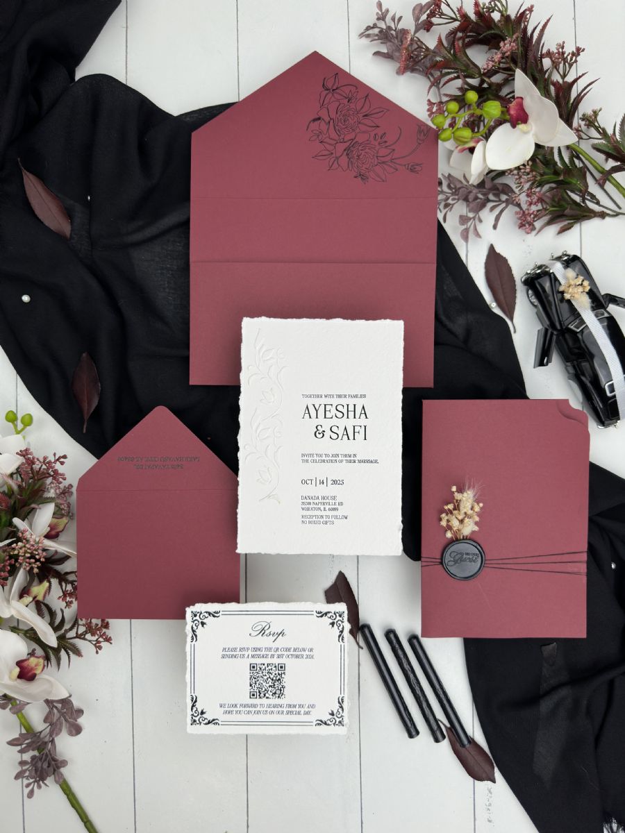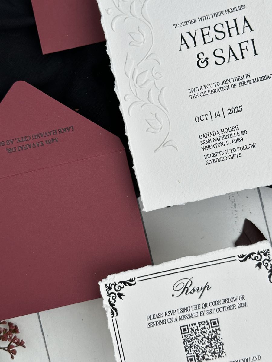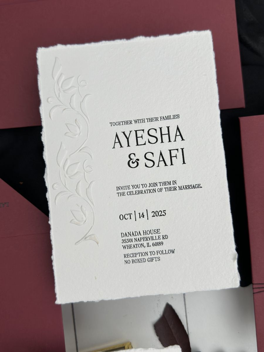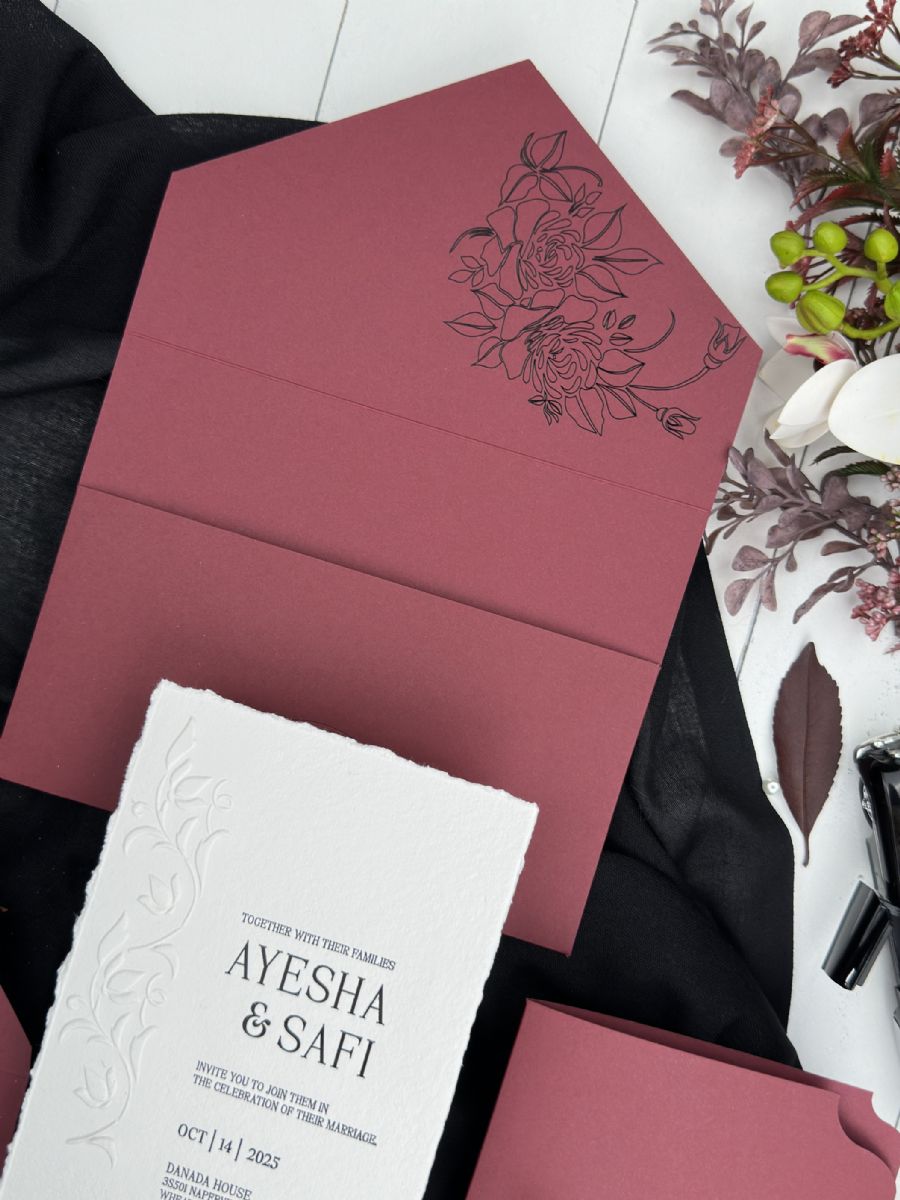 Yırtık Kenarlı Ve Kabartma Çiçek Baskılı Davetiye